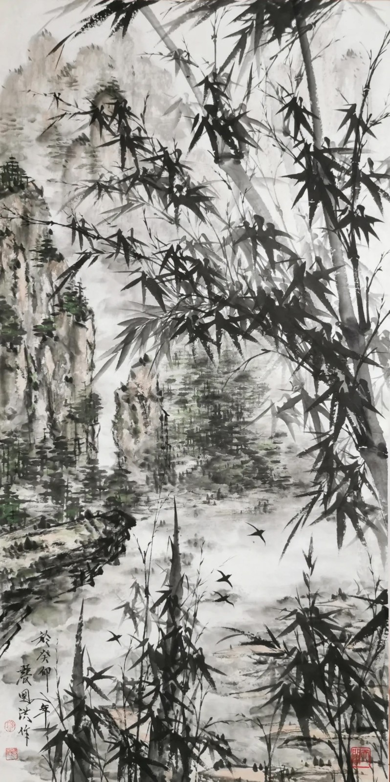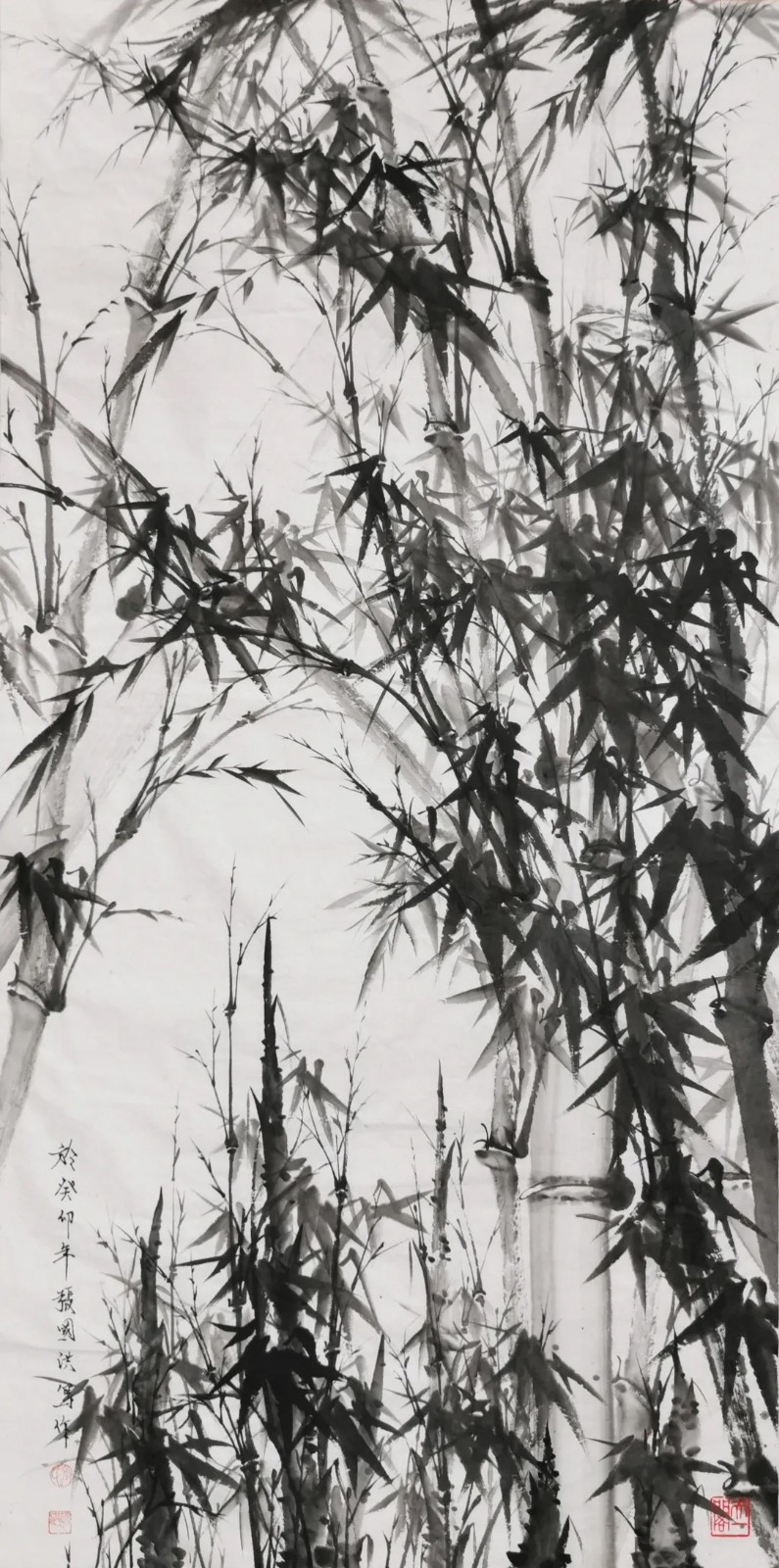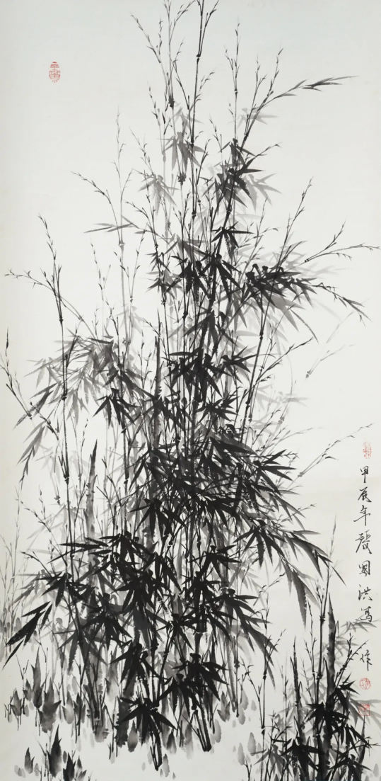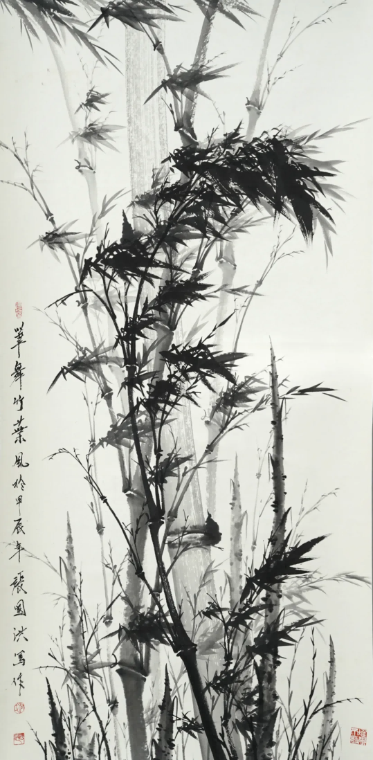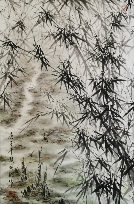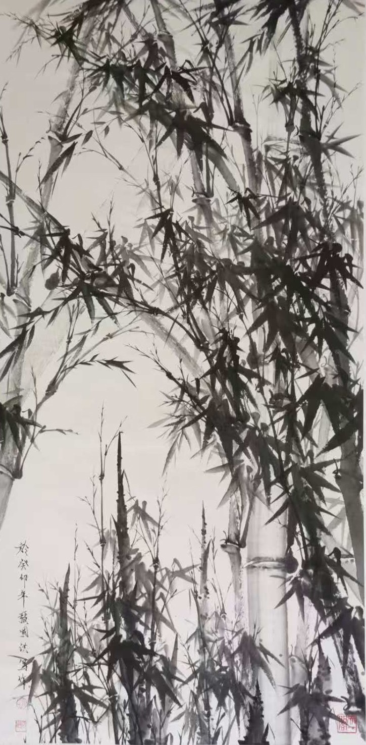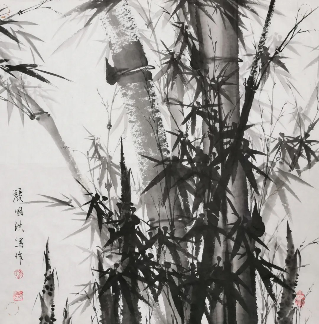 与兰之清幽相辉映的,是竹之劲节。在中国画史上,文同的“胸有成竹”、郑板桥的“眼中之竹、胸中之竹、手中之竹”,皆为竹画树立了典范。张国洪的墨竹创作,正是在这些高峰之后,寻找属于当代的“写竹”之道。