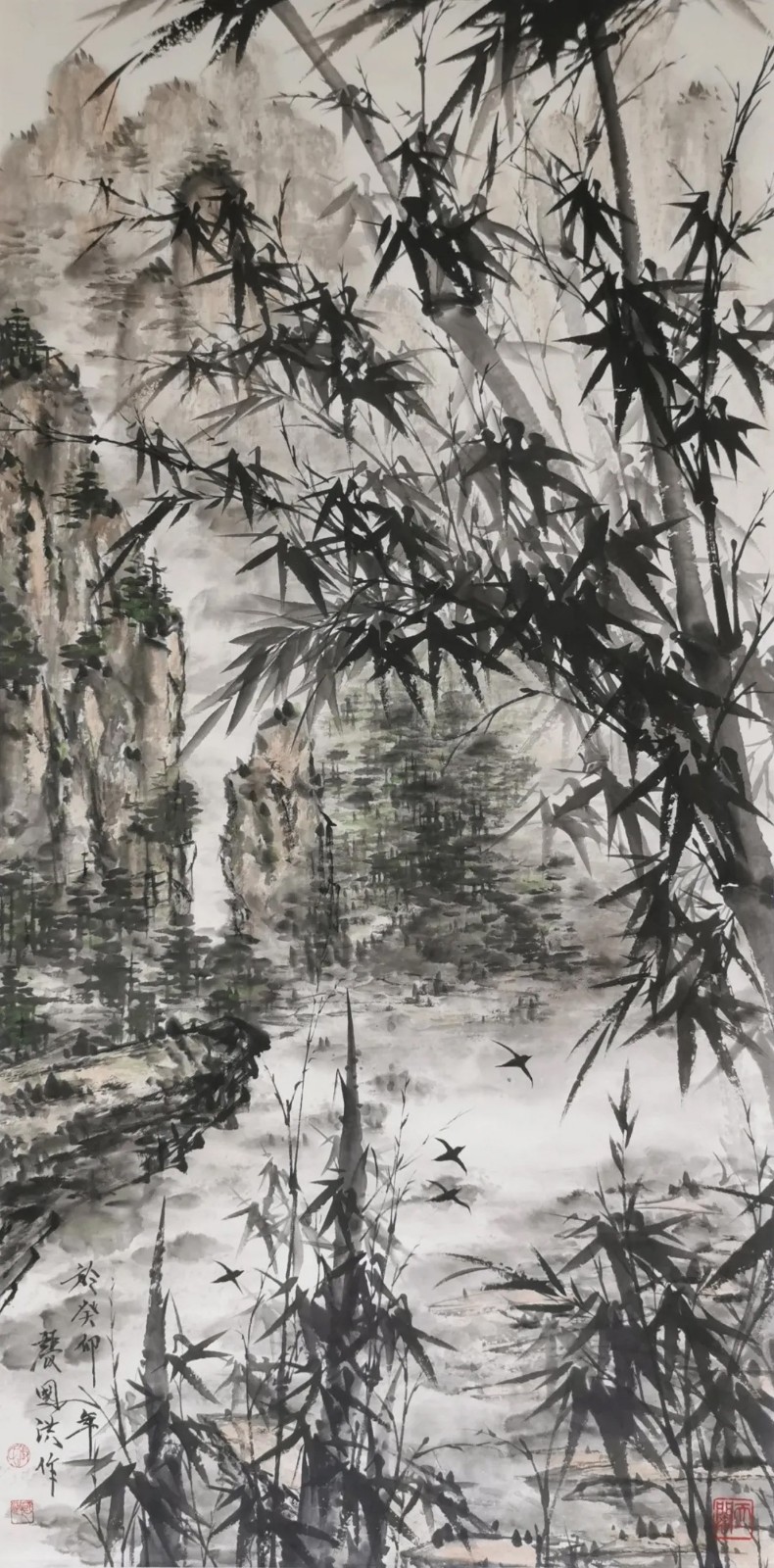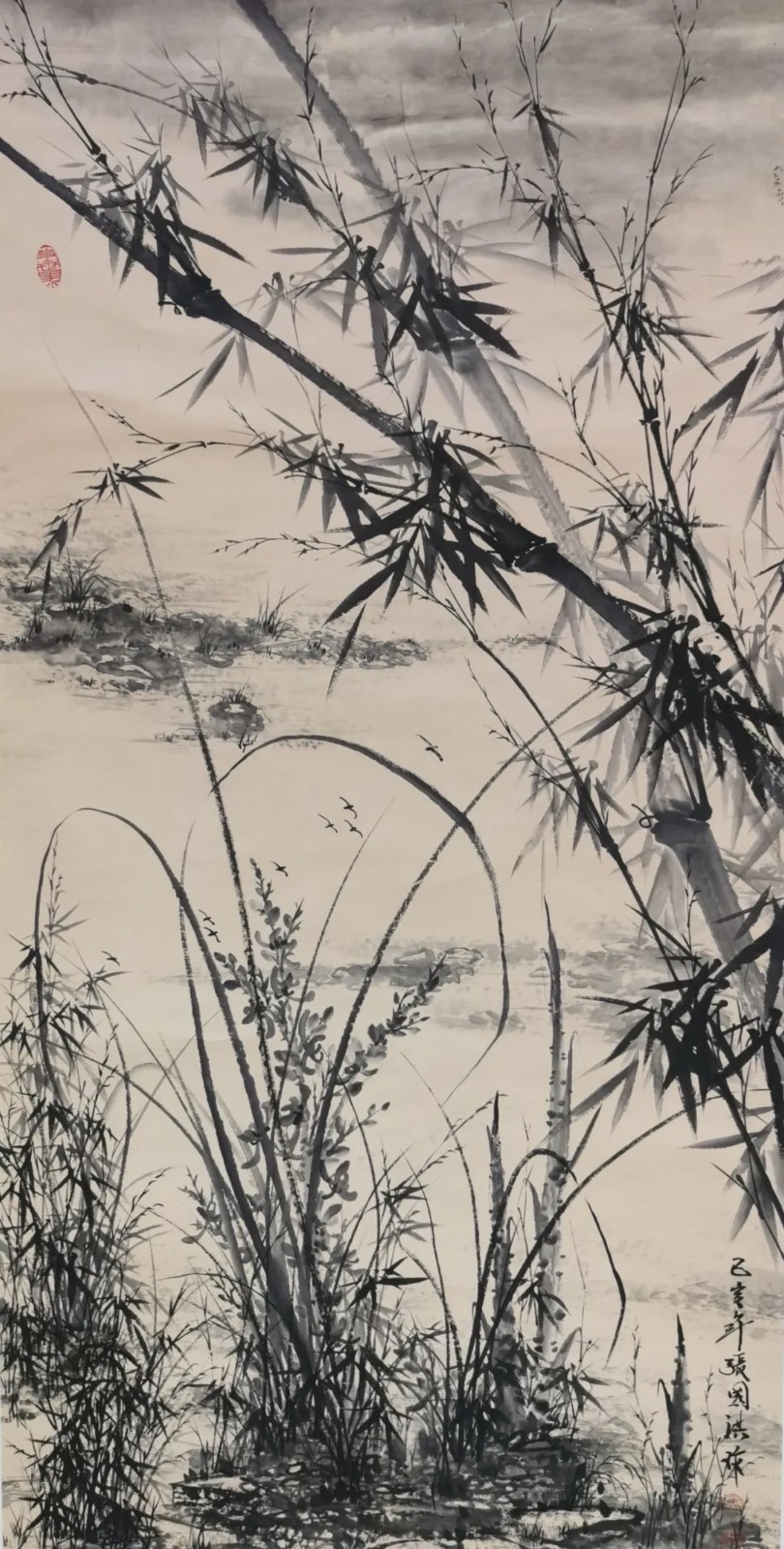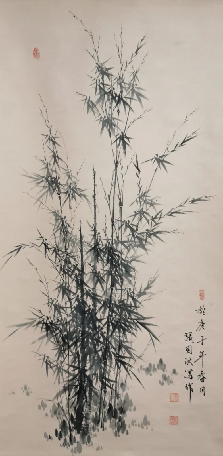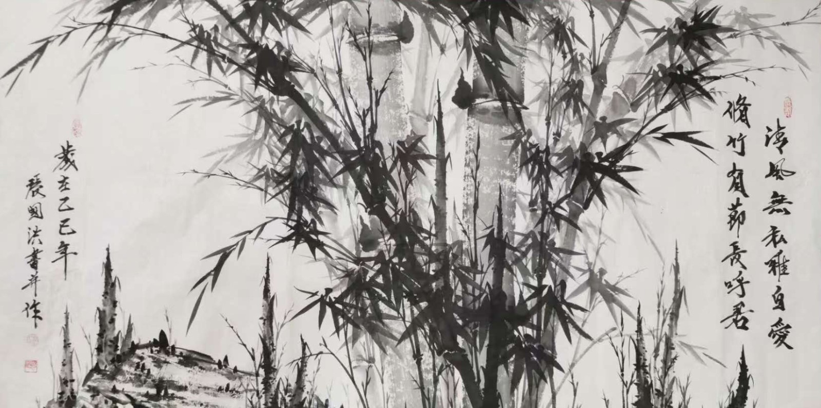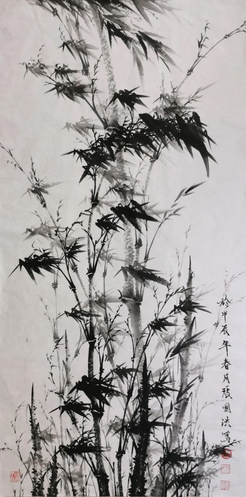 与兰之清幽相辉映的,是竹之劲节。在中国画史上,文同的“胸有成竹”、郑板桥的“眼中之竹、胸中之竹、手中之竹”,皆为竹画树立了典范。张国洪的墨竹创作,正是在这些高峰之后,寻找属于当代的“写竹”之道。