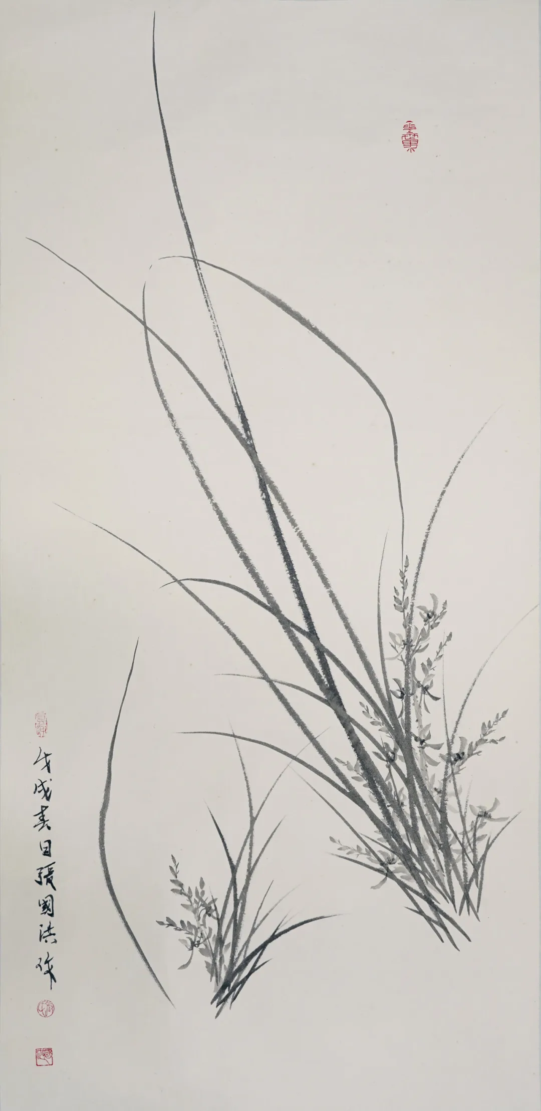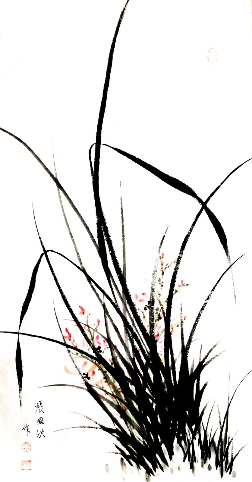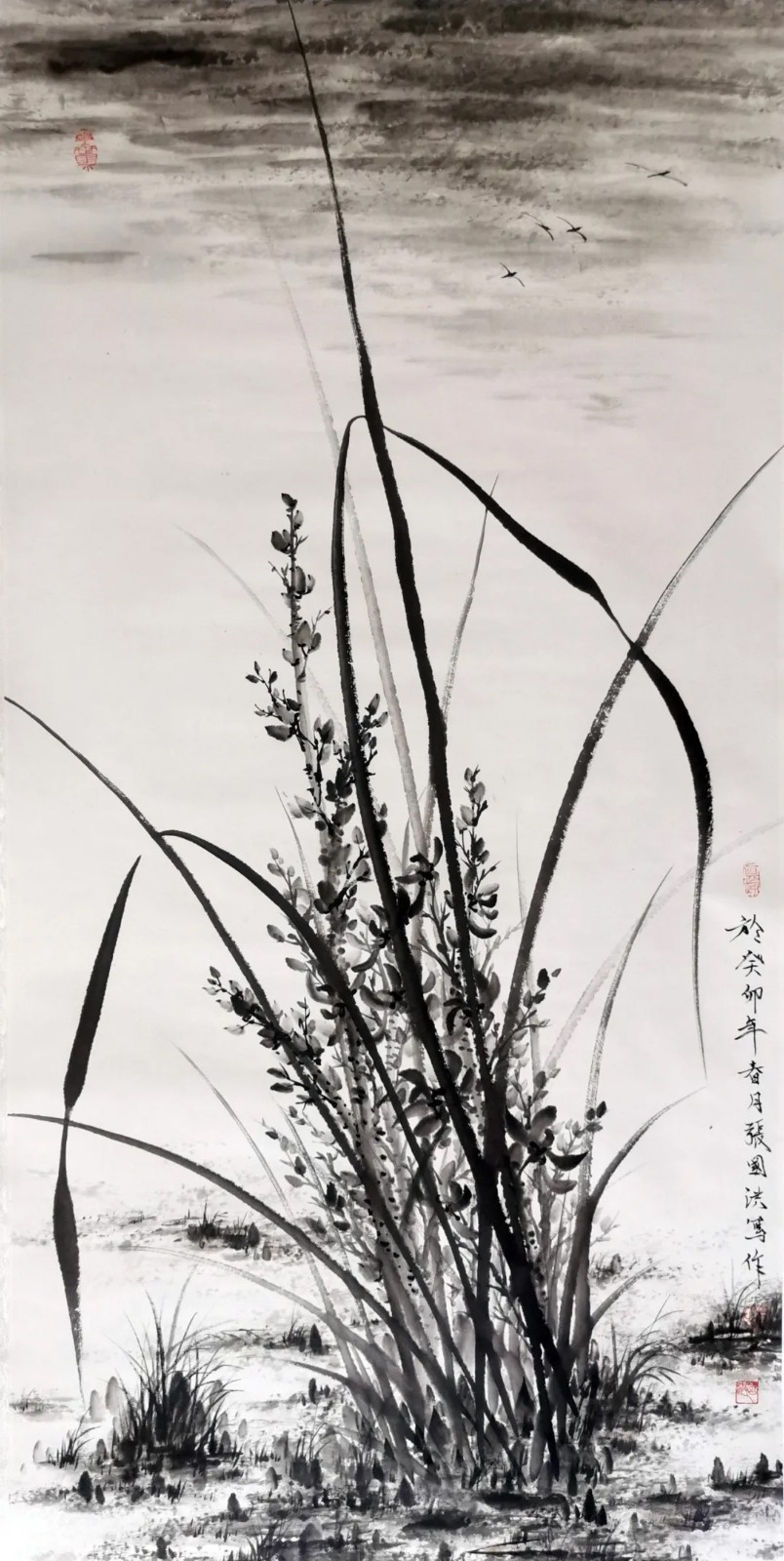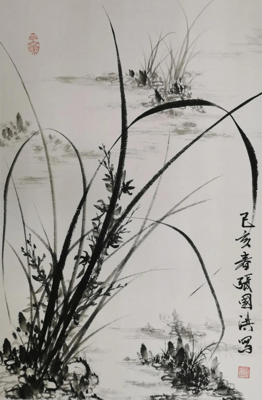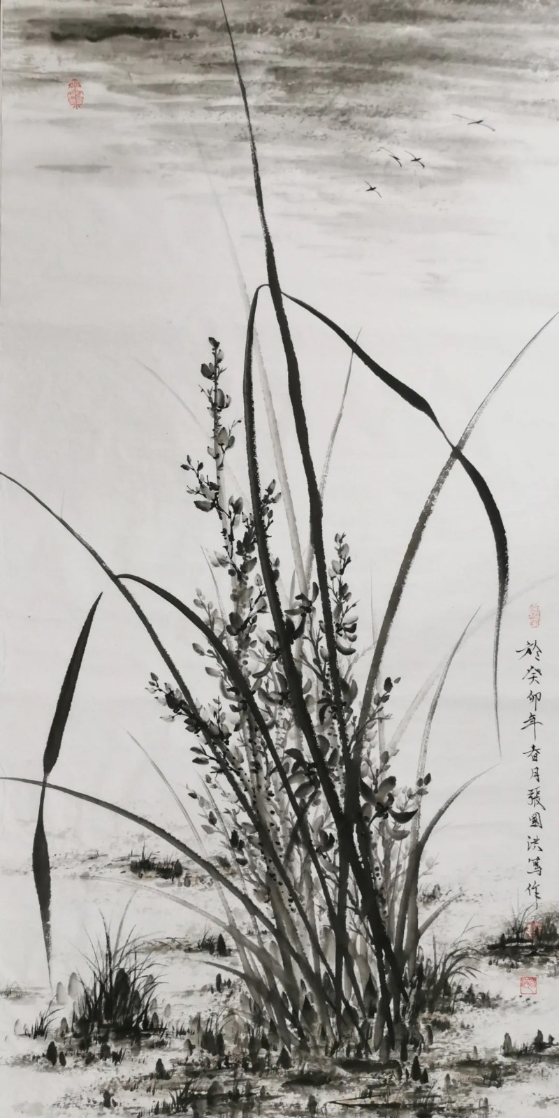 兰花,自屈原“纫秋兰以为佩”始,便成为中国文人精神的重要象征。张国洪的墨兰创作,沿着这条文脉前行,又注入了属于这个时代的审美思考。