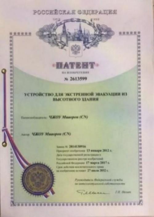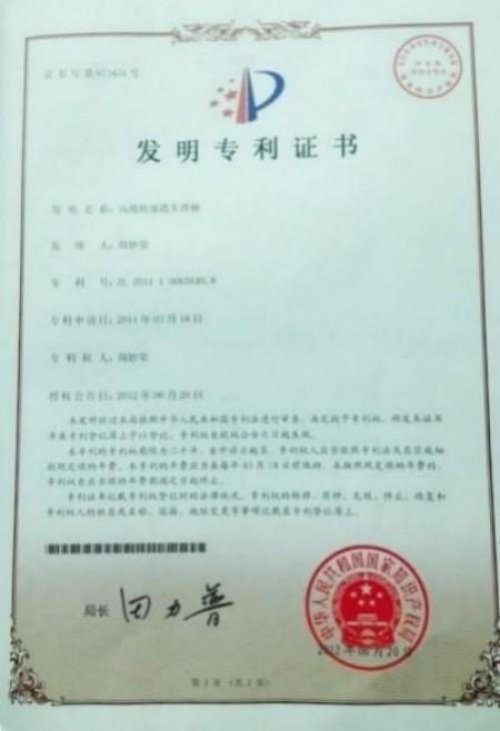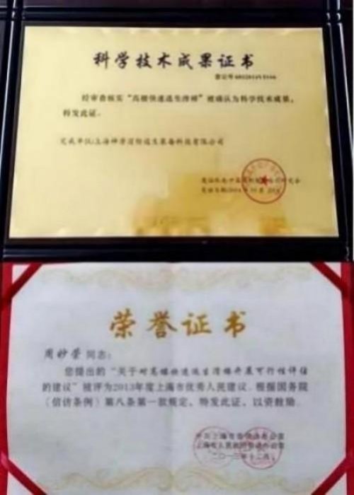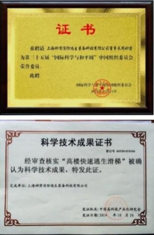 1) 发明专利《高楼快速逃生滑梯》 由上海市政府列为《可行性研究项目》 。 由市建交委牵头各相关单位进行研发。