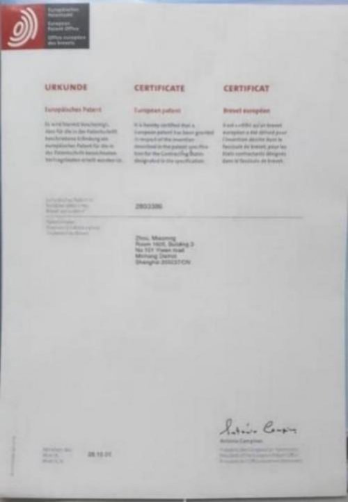 国际PCT 欧盟发明专利授权书