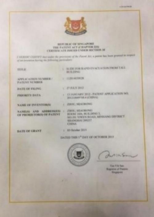 2013年 , 发明专利《高楼快速逃生滑梯》 研制成功 , 破解了高楼逃生的难题!